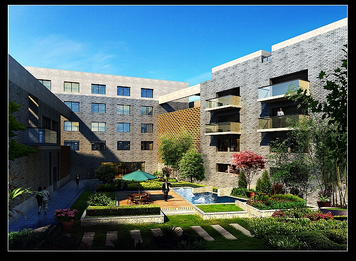 院落的镂空砖墙将园林建筑中漏景、借景等手法加以体现,使景观相互渗透。