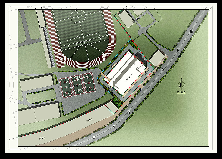 1、用地及周边环境现状:综合实训中心用地南侧紧邻通往双龙风景区的金双路,用地西侧为六层居民住宅楼,东北侧为110V罗店变电所。基地与原校园用地之间高差约为10米,学生实习从校园西北侧进出,酒店、宾馆人流从南侧金双路上进入。
