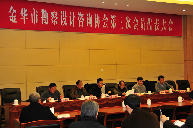金华市勘察设计咨询协会第三次会员代表大会于2012年12月28日在金华市文化中心西区205会议室召开。会议审议通过了二届理事会工作报告、协会章程修改说明、二届理事会财务报告、会费缴纳办法等文件;会议选举产生了三届理事会;会议选举吴学敏为三届协会理事长;选举吴建平等20人为三届理事会副理事长;根据理事长提名会议决定赵良才为协会秘书长;决定聘请潜高星、贾润根为协会名誉理事长;会议为获得2011年度金华市优秀勘察设计项目的单位和个人颁了奖;金华市住房和城乡建设局副调研员,第二届协会名誉理事长孙伟民应邀出席会议;金华市住房和城乡建设局科技与勘察设计管理处许春福处长出席会议并就协会加强自身建设、做好双向服务职能、创新工作举措等发表了重要讲话。